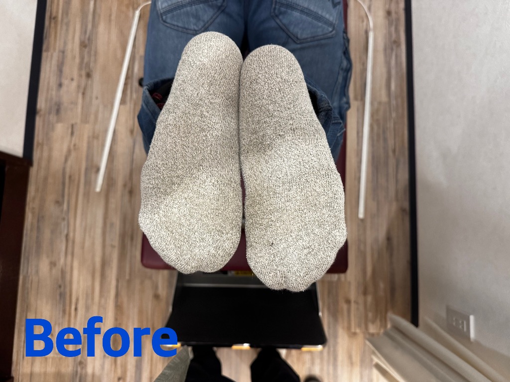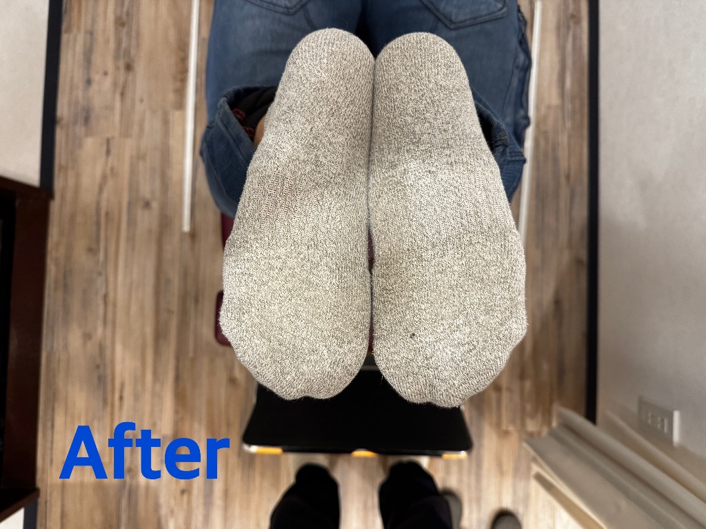施術後の脚長差は写真の通り左右差はなくなりましたし、