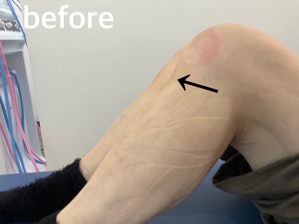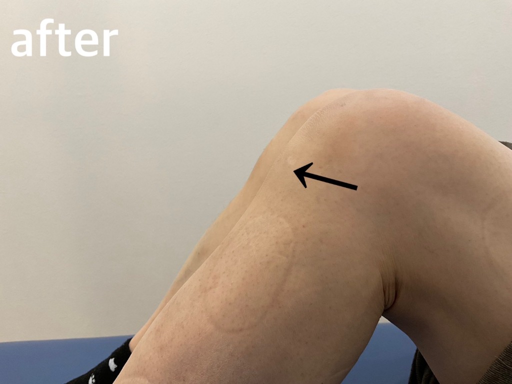 写真を見ても少し脛骨粗面部周囲の落ち込みが軽減したように思います。