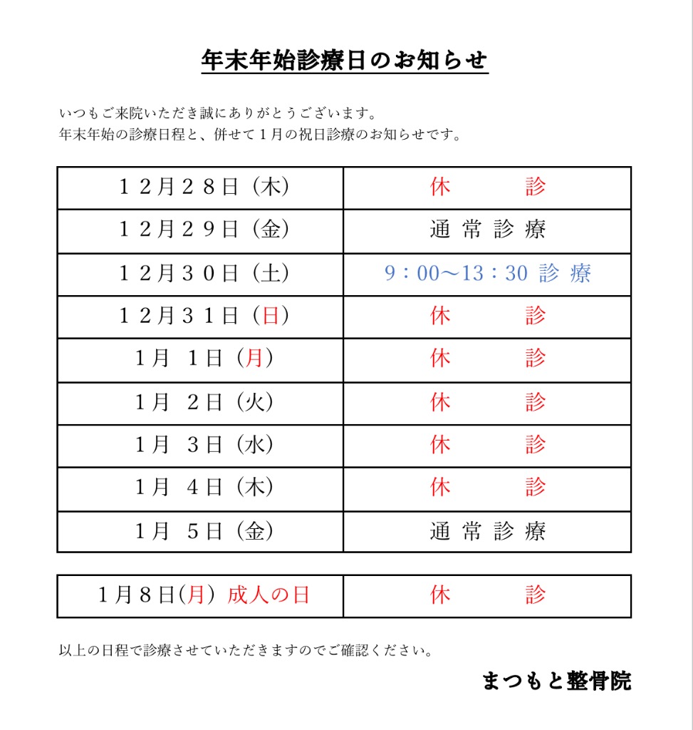今年残り2ヶ月も来年からもまつもと整骨院をよろしくお願い致します🙇🏻♂️