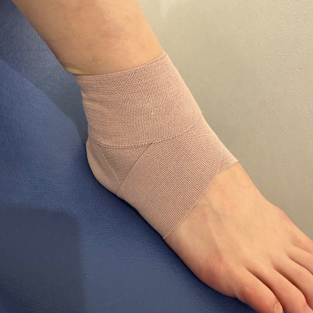 そして最後には患部を圧迫し腫れの拡がりを抑えるのと